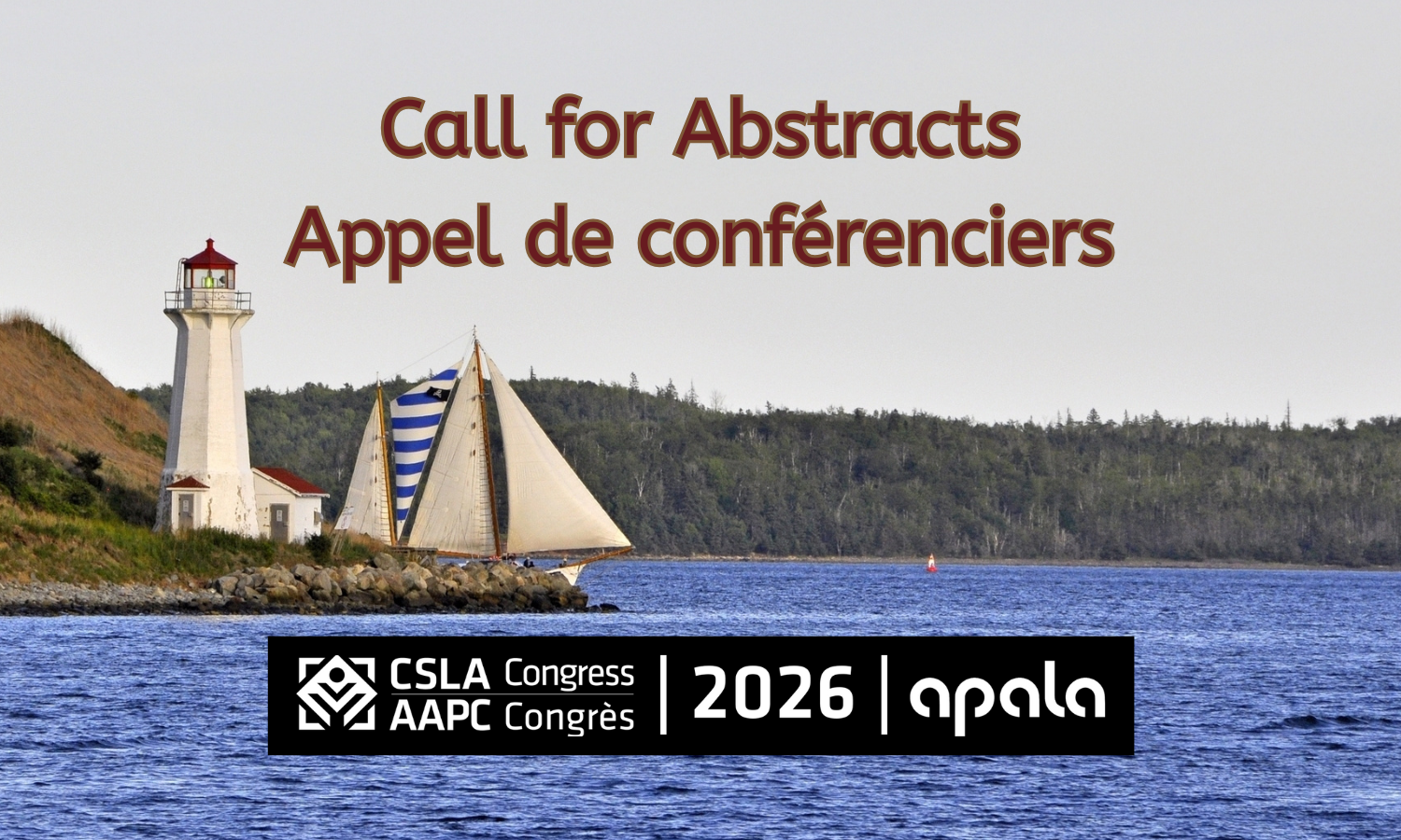The Canadian Society of Landscape Architects (CSLA) together with the Atlantic Provinces Association of Landscape Architects (APALA) invite qualified experts to submit abstracts for presentations and sessions to be presented at the upcoming 2026 CSLA-APALA Congress.