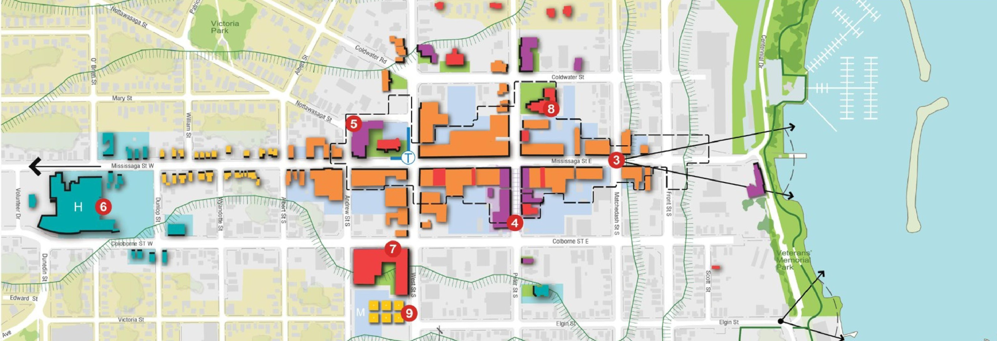 The Downtown Tomorrow plan is visionary in how it link's Orillia historic core not only to the waterfront but to the larger network of environmental and recreational open spaces in the city. It also shows how institutional, residential and mixed-use development, at a scale that respects the city's heritage, can transform former industrial lands and ensure downtown has a population that will sustain commercial activity year-round. Balancing intensification are a series of public realm initiatives aimed at attracting more visitors and tourists to Orillia. While including bold ideas, the plan is also realistic, identifying projects for the short, medium and long terms that are manageable and affordable, including 20 things to do in the next 2 years.