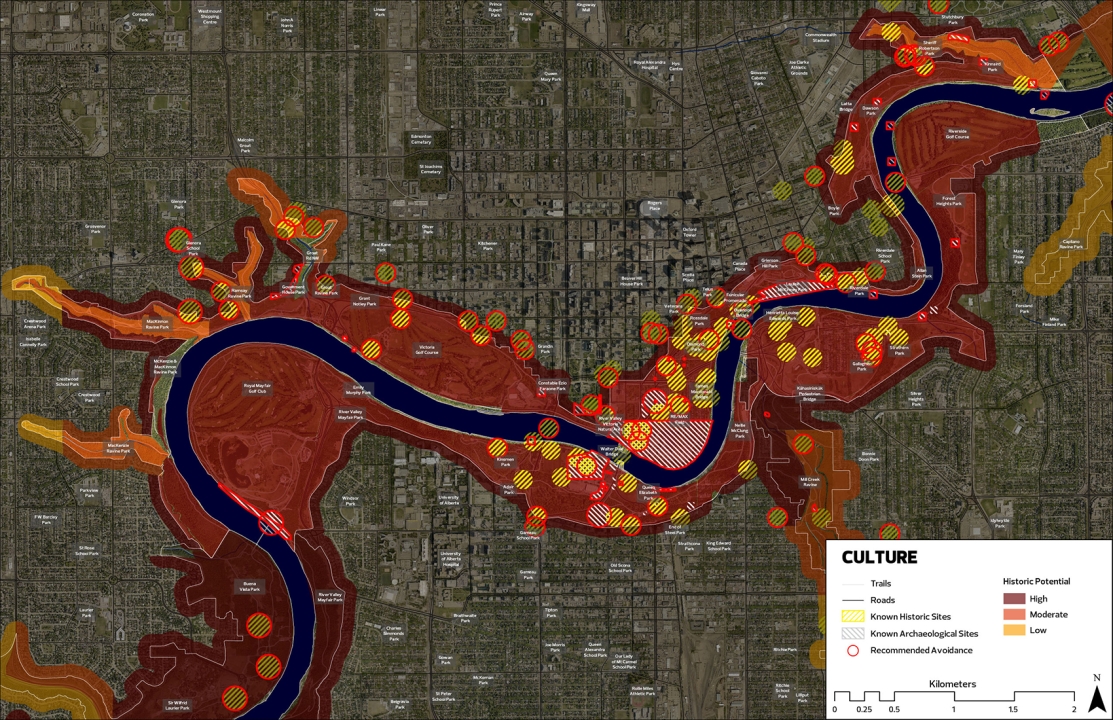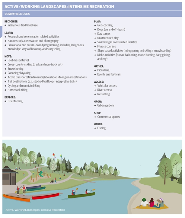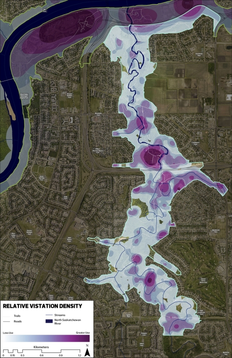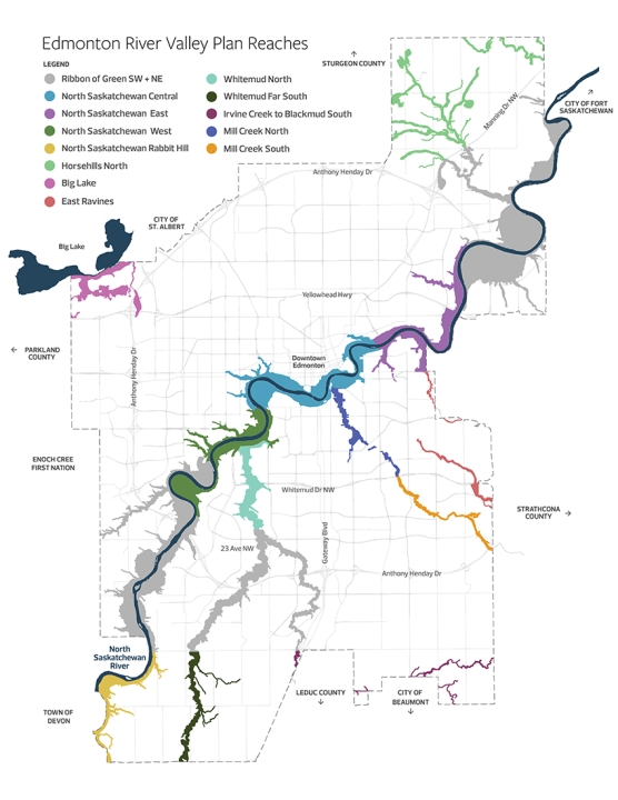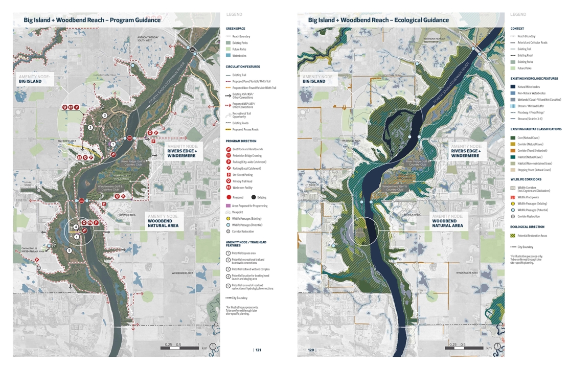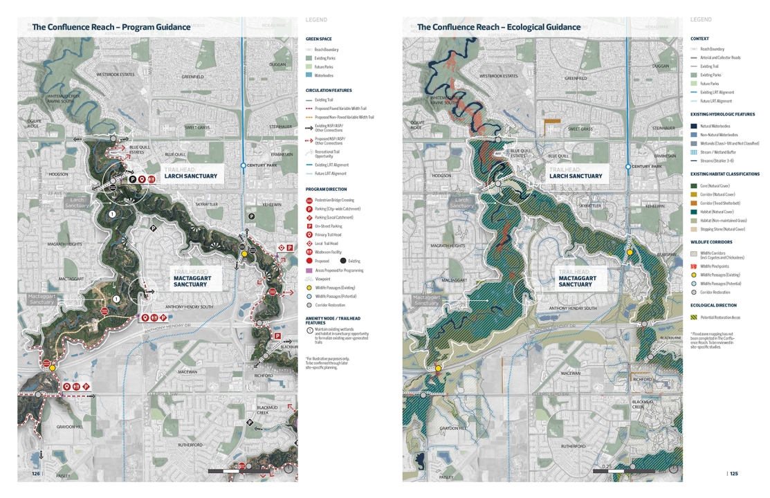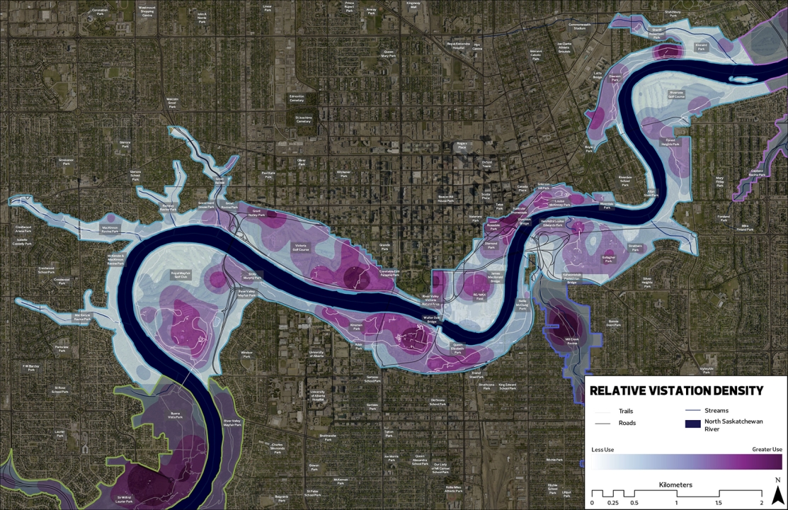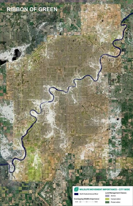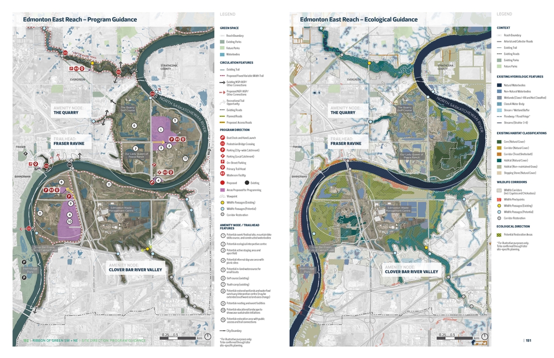 Edmonton’s Ribbon of Green provides a far-reaching vision for the sustainable use and preservation of the North Saskatchewan River Valley and Ravine System. The project draws on robust ecological analysis, extensive cultural assessment, comprehensive stakeholder engagement and state-of-the-art, location-based visitation mapping. This irreplaceable landscape provides essential natural habitat and wildlife connectivity for Edmonton’s biodiversity, while providing residents with a renowned recreational resource in which to play and gather. The project provides programming and ecological guidance for the system, as well as research-specific visioning to guide subsequent finer-scale management and design decisions. The contributions each area makes to the city and its residents are described through the lenses of ecology, celebration and wellness. Land management classifications identify preservation, conservation and active use areas, each with their own unique policies and guidelines to ensure the responsible use and development of the Ribbon of Green in years to come.