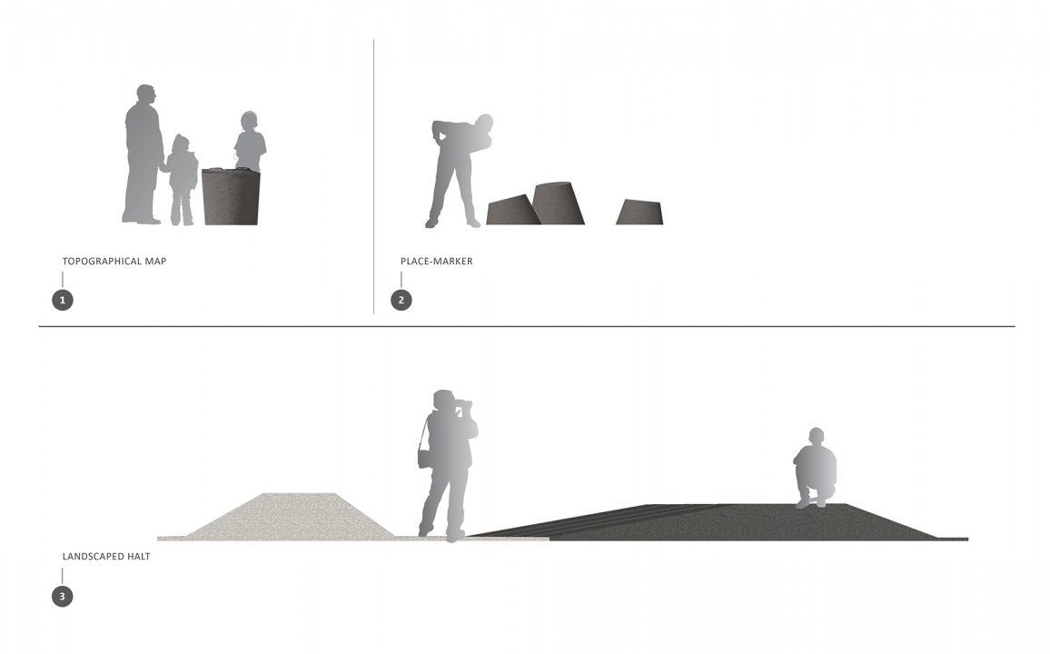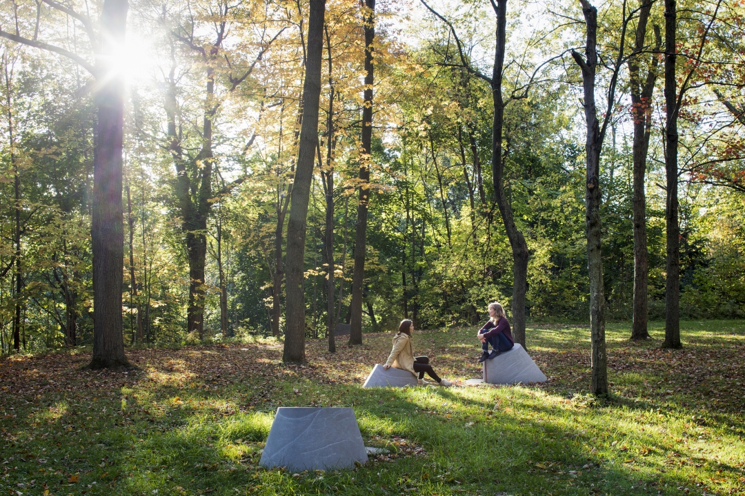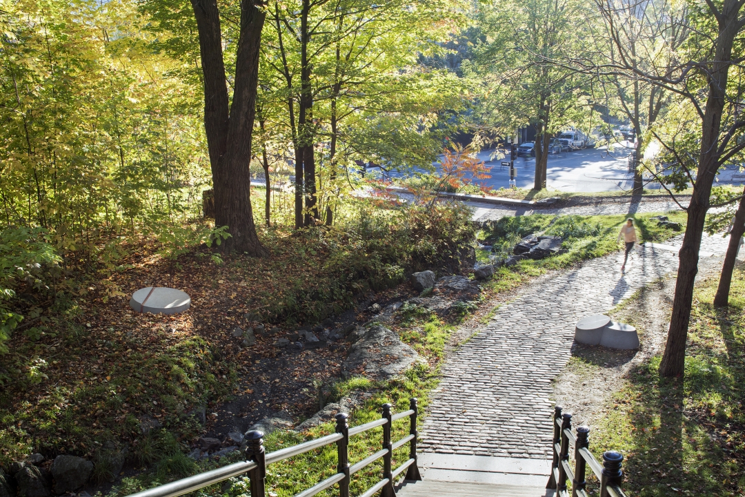 Inaugurated in 2017, Escales découvertes celebrates Mount Royal, a year-round popular destination for Montrealers and tourists alike. A family of granite and bronze objects—tridimensional maps, place-markers, and landscaped halts—was designed for the 1850-acre Mount Royal Heritage Site providing visitors with a new, multisensorial experience of this unique environment.