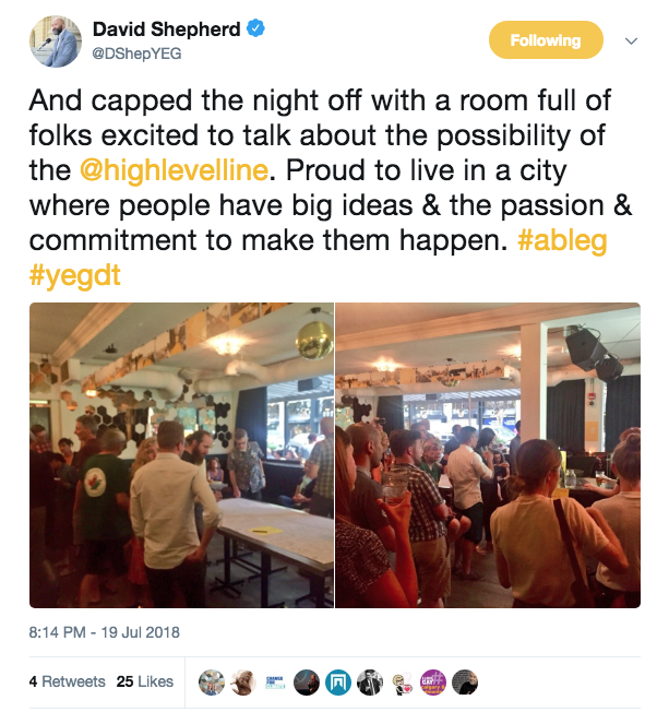 Connecting Edmonton's two cultural cores and eight central neighbourhoods, High Level Line is the re-imagination of an underutilized rail corridor through the heart of the city. This unsolicited proposal by passionate young professionals inspired a city-wide discussion about the line’s powerful potential and kick-started momentum to bring it to life.