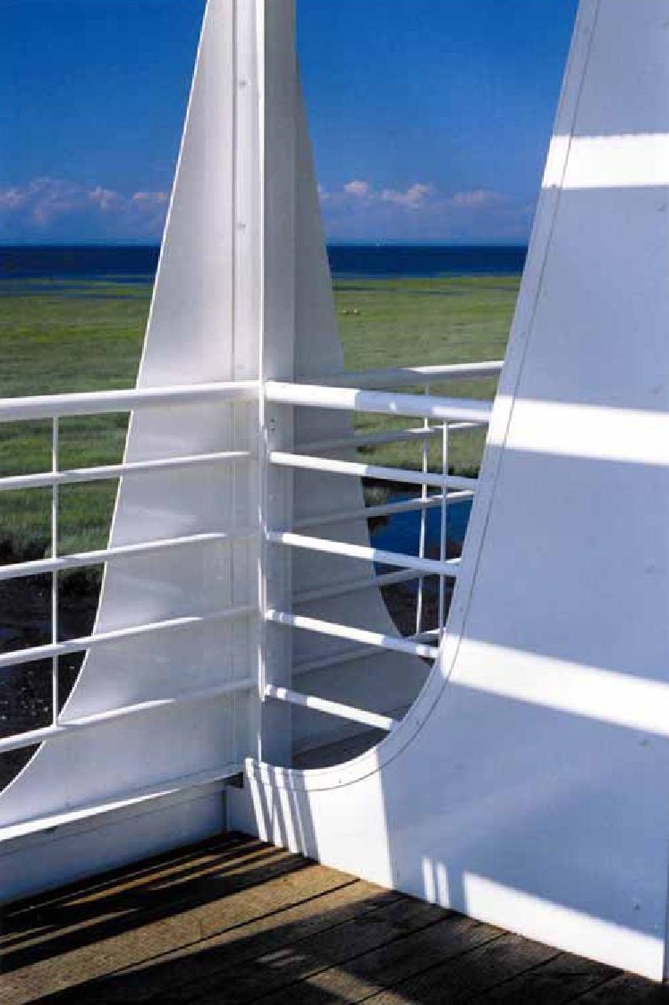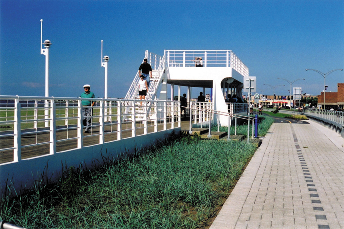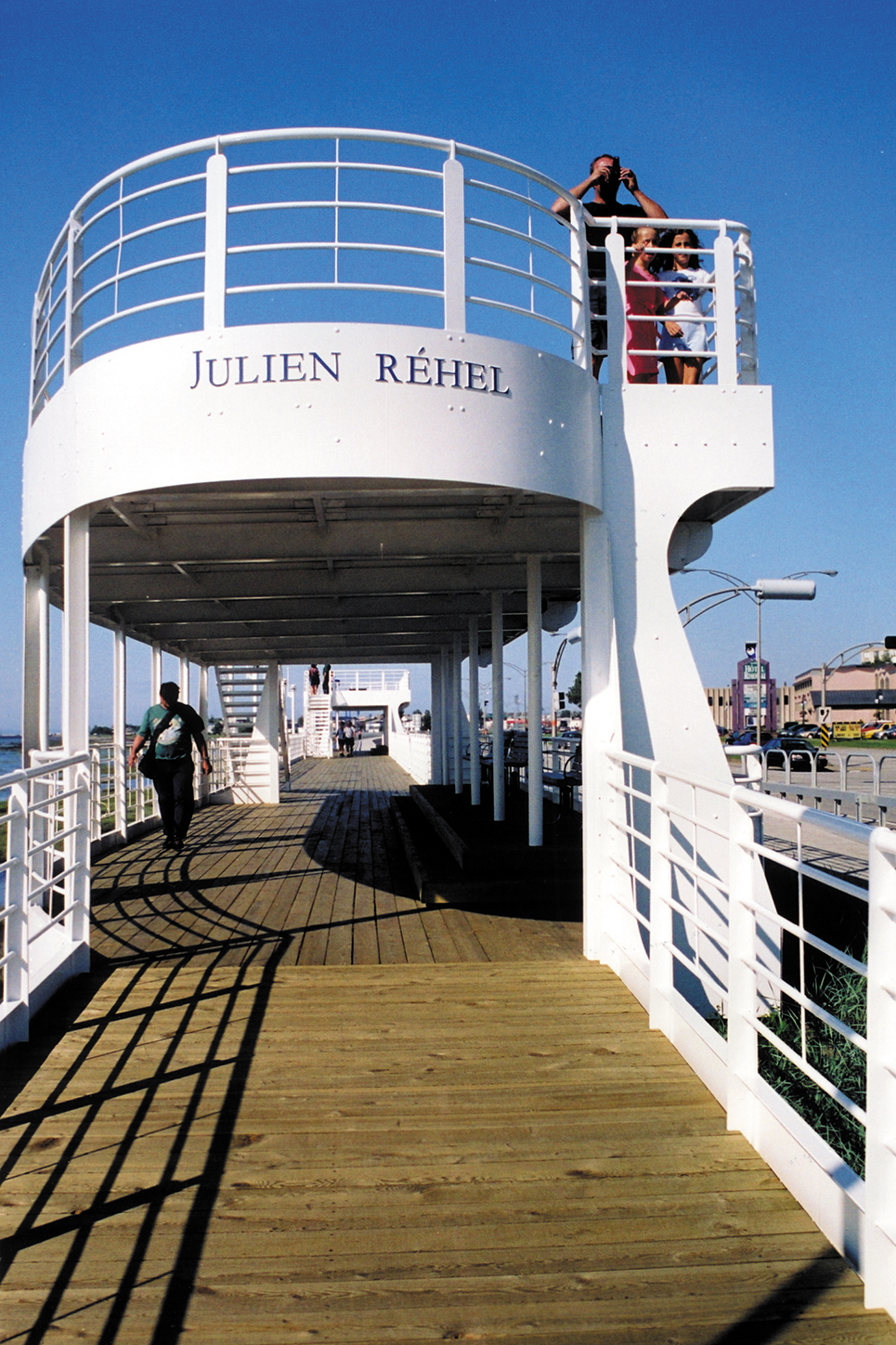 In 2003, the City of Rimouski asked Lemay+DAA Group to design a waterfront promenade called “La Promenade de la Mer”. The structures recall naval architecture and the white ships of the early 20th century that traveled the river. The promenade serves pedestrians and cyclists and offers panoramic view points of the St.Lawrence River. The project was granted both a provincial and a national design award by CSLA. Thanks to this success, the group was asked to design an extension to this promenade which has become a distinctive urban feature for the city.