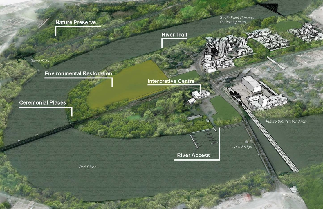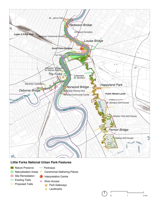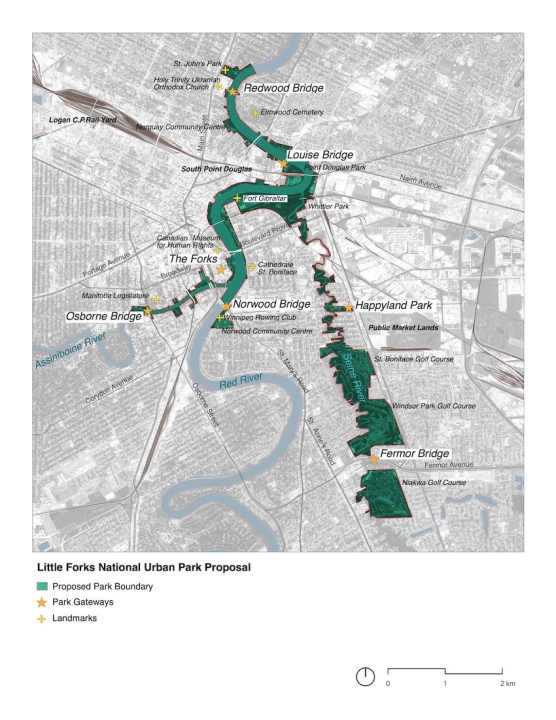 Little Forks is a citizen-led proposal for a new national urban park in Winnipeg, MB. As envisioned, the park would be located at the confluence of the Red, Seine and Assiniboine Rivers, and would comprise 430 hectares of land and water areas, 10 kilometres of waterways, and most remaining natural lands inventoried in Winnipeg’s urban centre. The proposal also argues that the national urban park program should serve to heal urban land, and that the protection of established natural areas should be complemented by the restoration of ecologically strategic but disturbed sites; in this instance, 23 ha of legacy industrial lands.