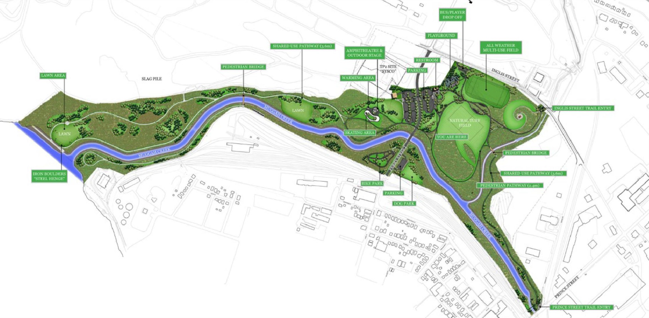 The new Open Hearth Park, on former industrial tar ponds, reunites three communities while capturing residents’ heritage and spirit previously divided by the contaminated site. Developed largely with the community’s input, the design balances active and passive uses, an inspiring and educational use of interpretive and sculptural elements, naturalized landscapes, waterfront access and an interactive play environment.