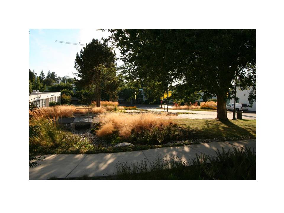 Sustainability Street has transformed the formerly non-descript thoroughfare of Stores Road into a visually appealing pedestrian-oriented promenade that complements the environmental processes and promotes awareness of the interrelationships between people, the built environment and the natural world. The design of the project has succeeded in improving clarity and ease of circulation, way-finding, and pedestrian comfort. The South side of the street serves as the green infrastructure filtering the storm water and providing habitat. The north side is the social side of the street, providing opportunities for education, public gathering and communication.
