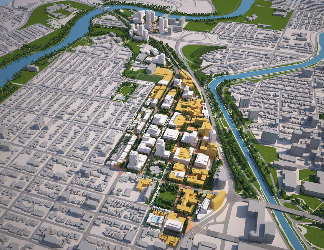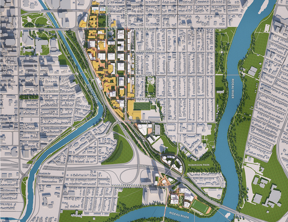 The University of Ottawa Campus Master Plan will guide the transformation of its environment, image and experience. It will restructure the University's mobility network and enhance its open space system to create a cohesive and memorable campus. It re-imagines the campus as compact, complete and context-sensitive, seamlessly integrated within the city and punctuated by iconic spaces.