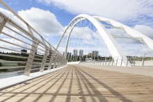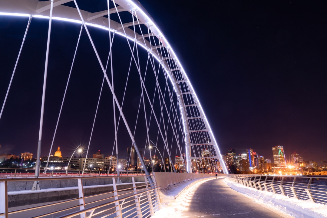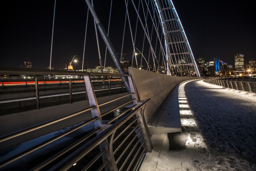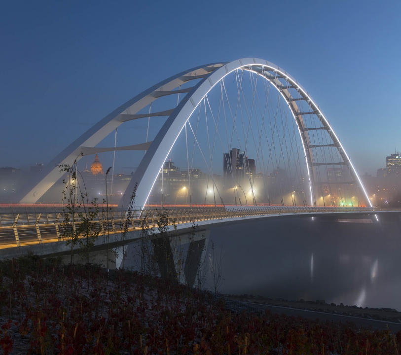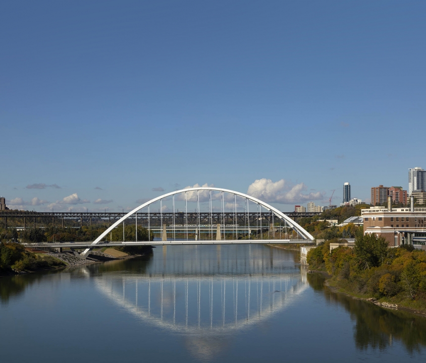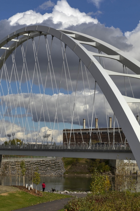 In only its first year, Walterdale Bridge has become the defining icon for Edmonton. More than simply a crossing for cars, the new bridge creates a public space where the duality of city and nature are celebrated at a pivotal, historically significant location. The elegant bridge and surrounding trails allow seamless connections and is a magnet for pedestrians of all abilities: joggers, cyclists, and photographers. It will remain a point of pride for decades.