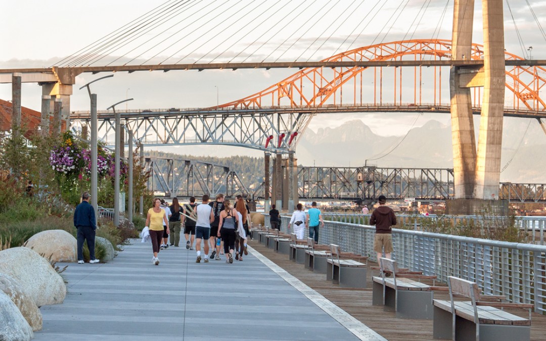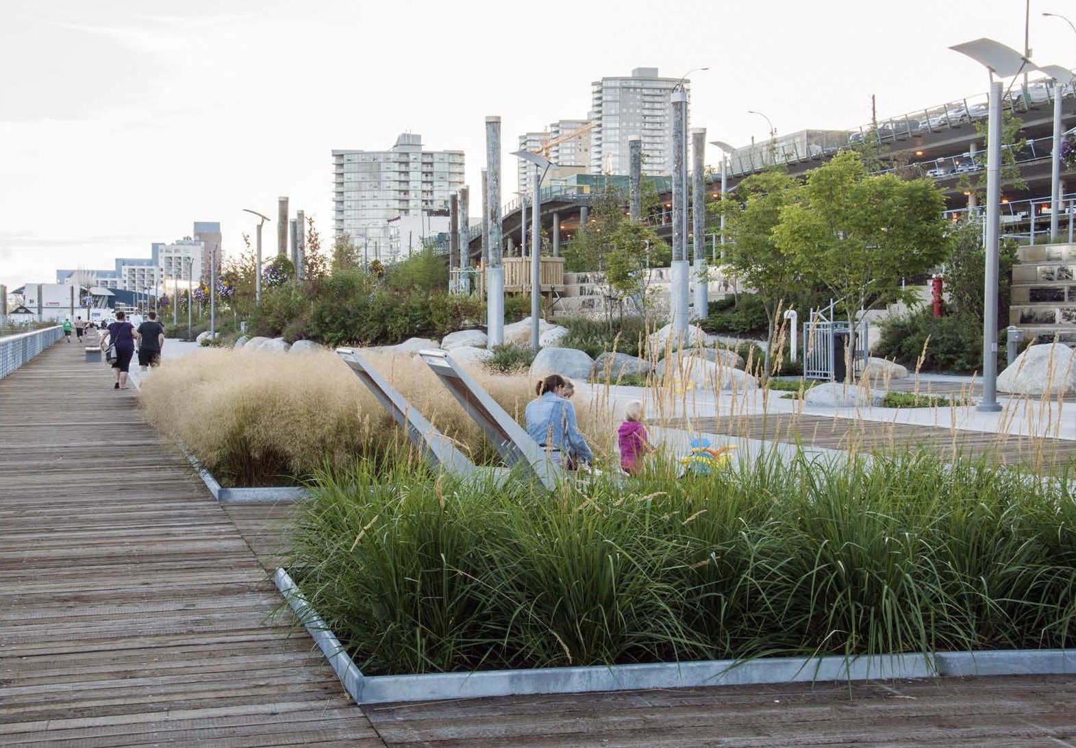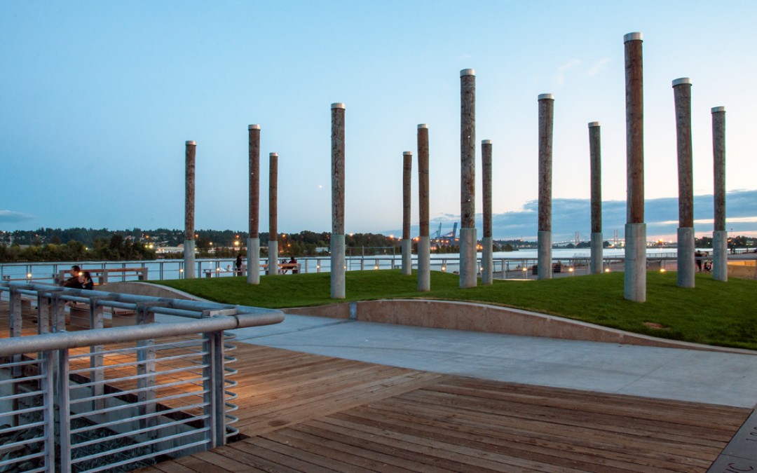 The design for this 3.8 hectare site on the Fraser River incorporates remnant piers, boardwalks and naturalized planting to activate the waterfront and carry the energy and excitement of this open space to Sapperton Landing, New Westminster Quay, and the downtown core.