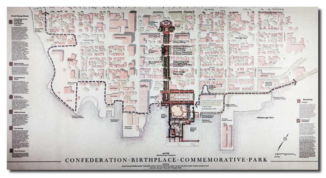 The tract of waterfront where the Fathers landed, however, remained ignored for over a century, first as an industrial site, then a brownfield. Not until 1995 would the city commemorate the historic landing in beautiful Confederation Landing Park, marked by a Grand Promenade from Province House to the landing site.